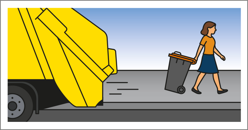 Zet uw container niet achter geparkeerde auto’s en parkeer ook geen auto’s voor de containerlocatie. Dit zorgt voor een vrije doorgang voor de inzamelwagen.